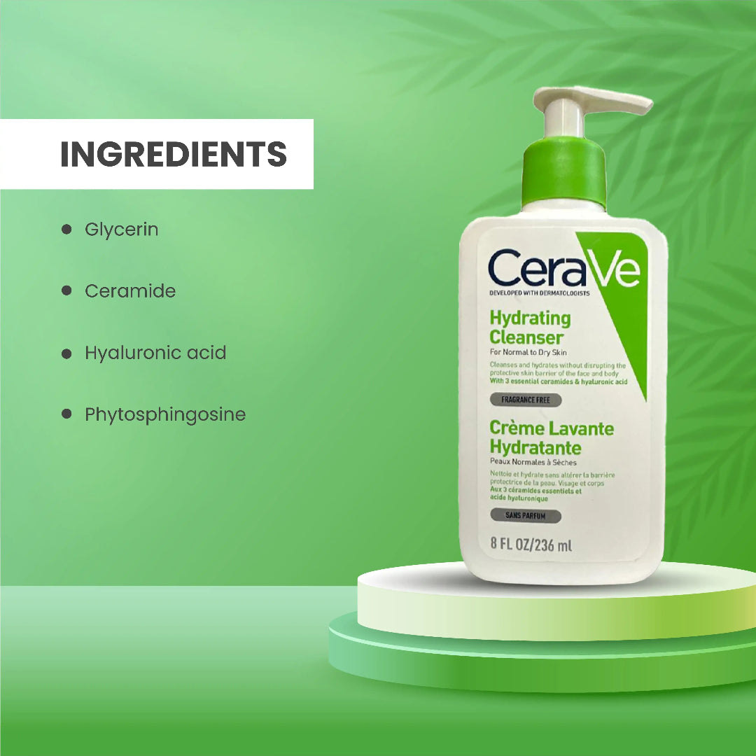 Gently cleanse and hydrate your skin with CeraVe Hydrating Cleanser, a dermatologist-developed formula designed for normal to dry skin. This non-foaming, fragrance-free cleanser removes dirt, oil, and makeup while helping to maintain the skin’s natural protective barrier.